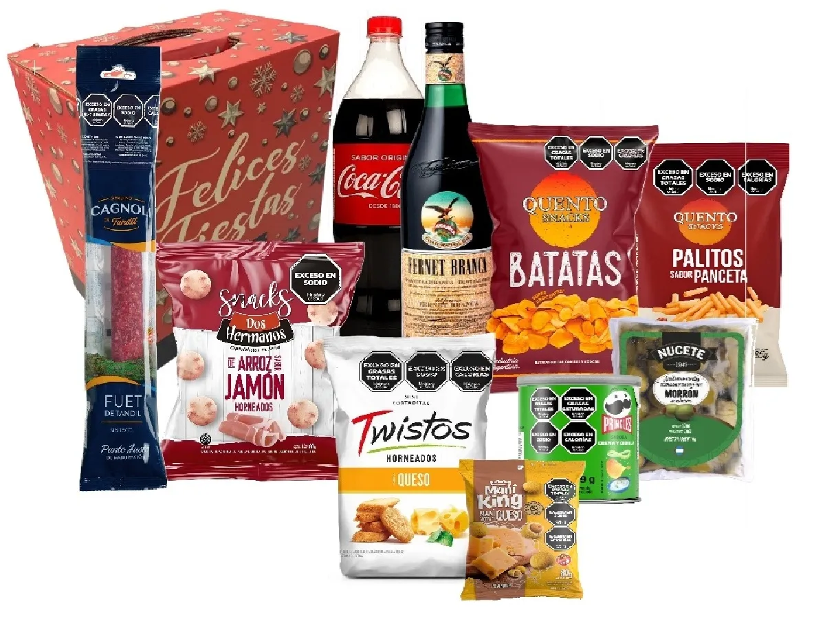 Caja Navideña Cuartetera - Pack Con Fernet, Coca Cola Y Snacks Variados