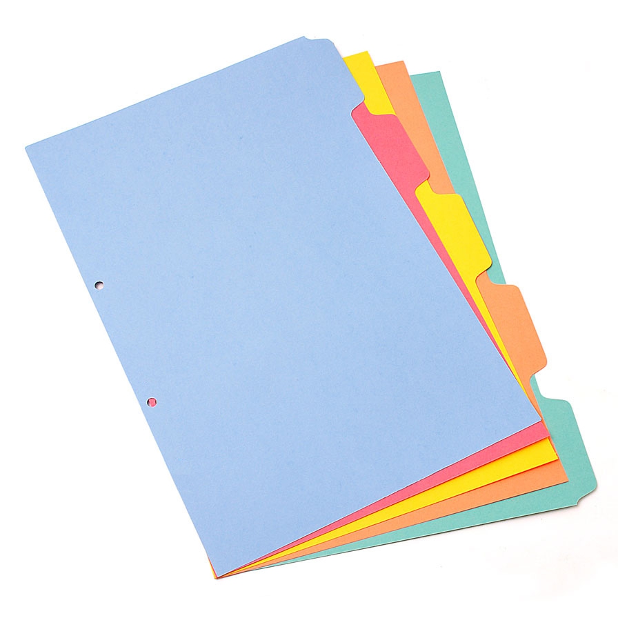 Separador de cartulina. Colores varios. Pack x 1 juego de 5 Posiciones. Tamaño oficio.